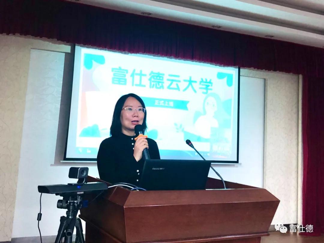 接下來,我們也邀請了清華數(shù)字園黨總支書記、紫荊學苑執(zhí)行院長——杜文演女士發(fā)表了講話。她講述了量見云大學的創(chuàng)辦初心,教育行業(yè)的現(xiàn)狀以及未來的愿景。杜院長表示,相信以量見云的專業(yè)云大學平臺,攜手富仕德,雙方必將通力合作,充分發(fā)揮企業(yè)優(yōu)勢,帶領富仕德員工不斷提升自我,為富仕德的發(fā)展與進步共同努力。