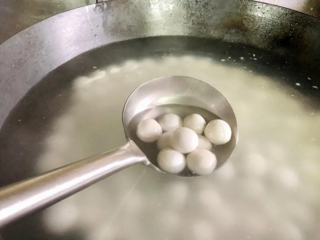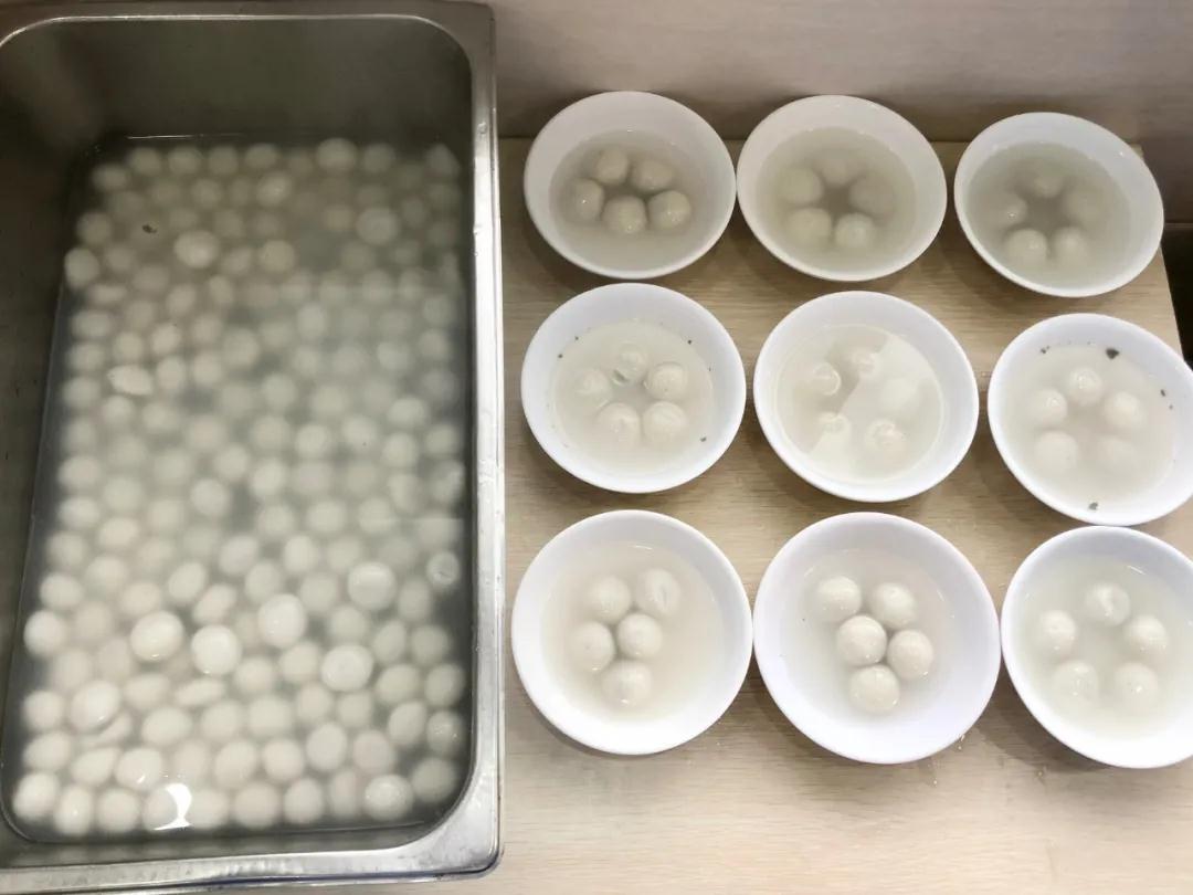 還未到飯點(diǎn),行政部工作人員早早的來到餐廳,整齊的擺好了小碗,細(xì)心的為每個(gè)碗里盛滿了湯圓。