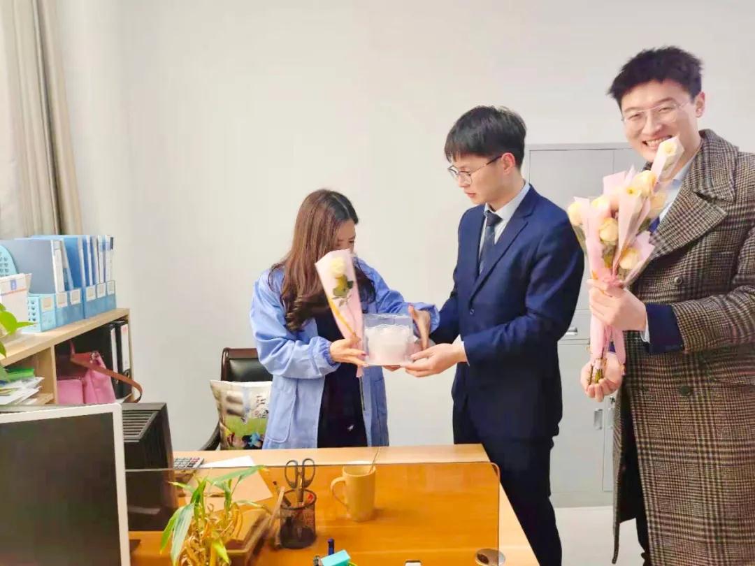 除了送上*誠摯的祝福,富仕德還為女神們準備了走心的禮物,鮮花與蛋糕方能配女神!由我們富仕德帥氣的小伙子為大家送禮物啦!!